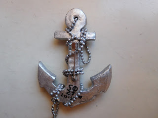 Najpierw kotwica - ma piękny kształt, wykonana została z modeliny. Podejrzewam, że została jeszcze polakierowana szarą farbą.