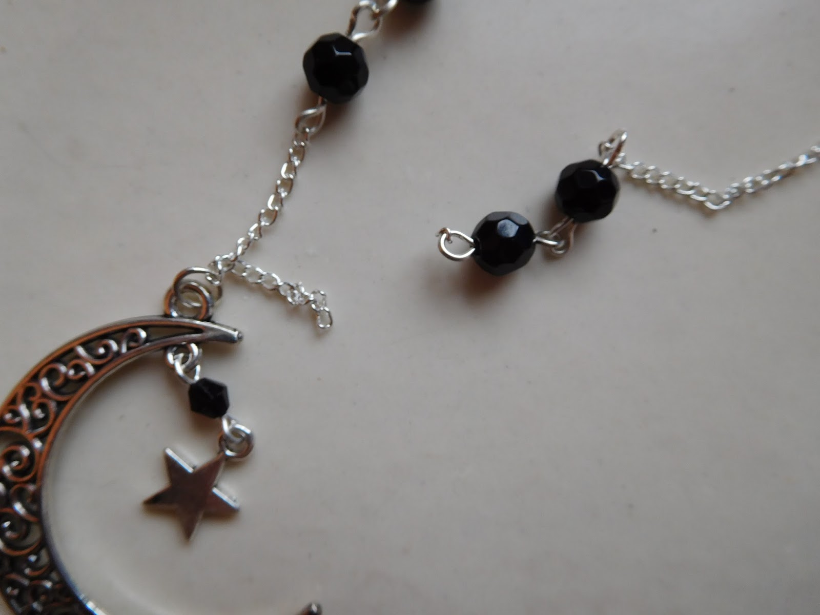 Na łańcuszku, dość blisko księżyca znajdują się cztery czarne koraliki.