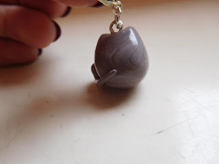 Kotek wykonany został z termoutwardzalnej masy plastycznej, która wydaje mi się o wiele twardsza i wytrzymalsza od zwykłej modeliny. Na zawieszce nie zauważyłam żadnych śladów odcisków palców.